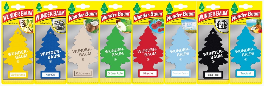 Wunder-Baum "Classic" 192er Thekenständer 8/s (Vanilla, New Car, Kokosnuss, Grüner Apfel, Kirsche, Summer Cotton, Black Ice, Tropical)