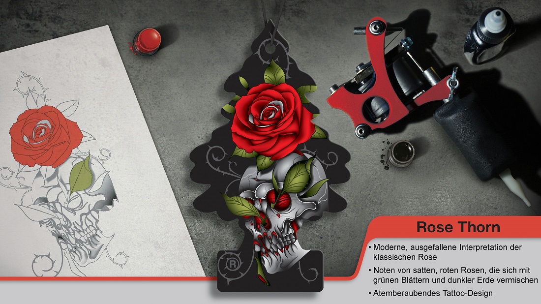 Wunder-Baum Rose Thorn langanhaltend intensiver Duft von satten roten Rosen, grünen Blättern & dunkler Erde - Nachhaltig ohne Box, Banderole Pack 24 Stk.
