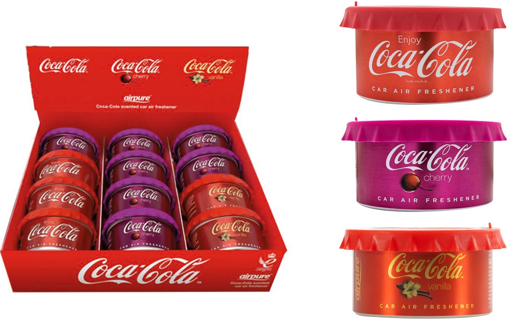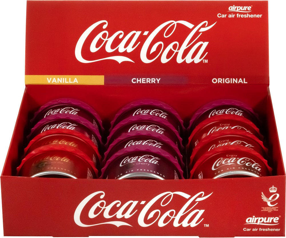 AirFlair Coca Cola Lufterfrischer Duftdose gemischt: 7x Cola Cherry, 3x Cola Original, 2x Cola Vanille im 12er T-Dsp.