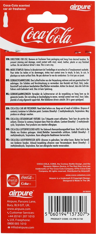 AirFlair Coca Cola Papier Lufterfrischer in Flaschenform mit Original Coca-Cola