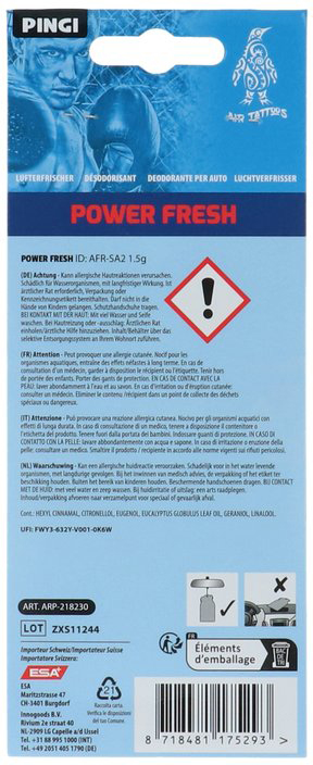 PINGI AIR TATTOO - Power Fresh Duft Lufterfrischer im New School Tattoodesign ca. 30 Tage Duft