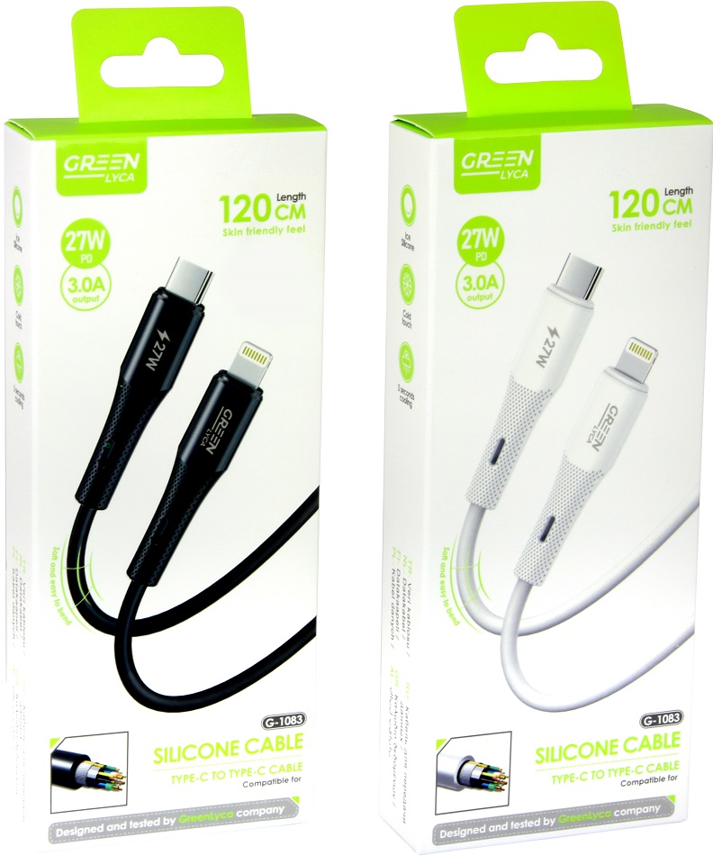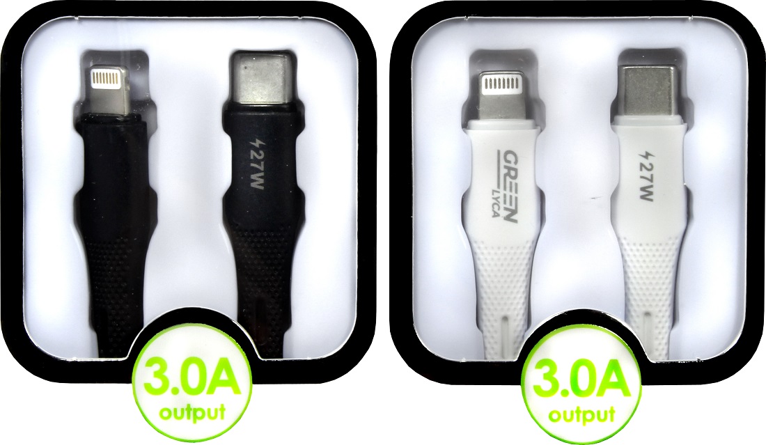 Green Lyca Lade-/Datenkabel USB-C zu Lightning 27W/3A ca. 120cm mit Knickschutz 2/s (Schwarz, Weiß)