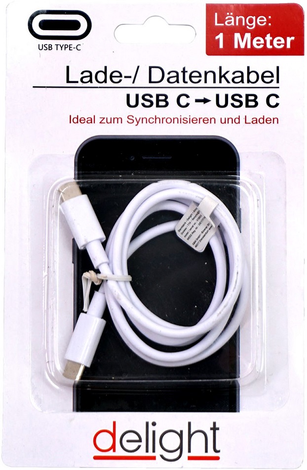 Lade-/Datenkabel USB-C zu USB-C Anschluss ca. 1m Weiß, einzeln verpackt auf Blis