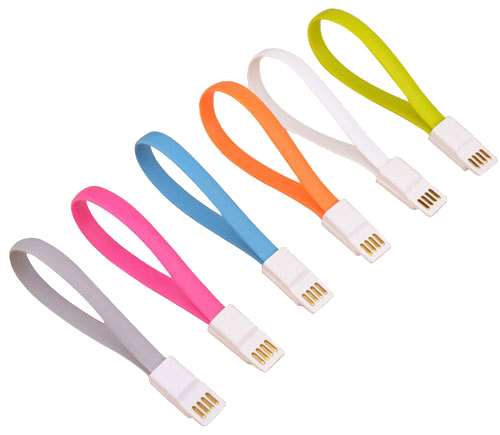 Silikon Micro USB Daten/Ladekabel farbig sort. mit Magnet ca.23cm blisterkarte