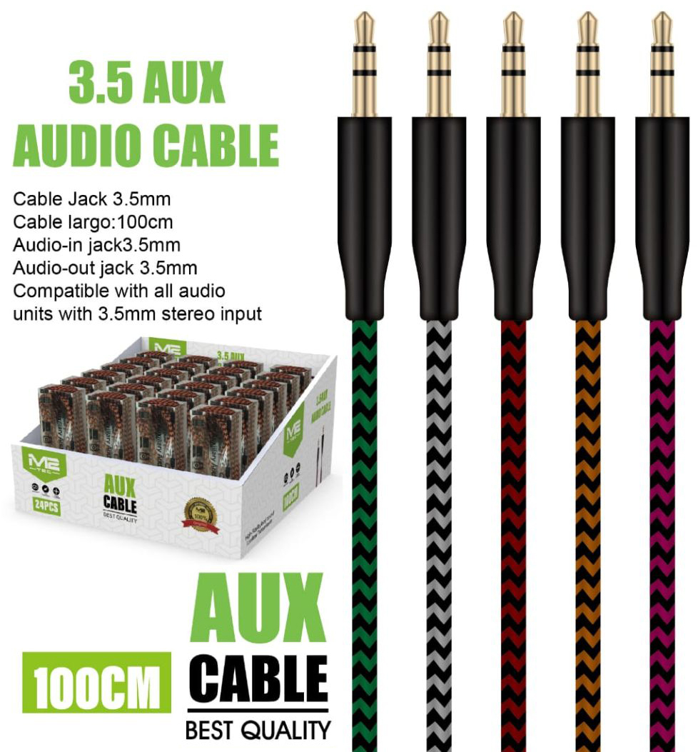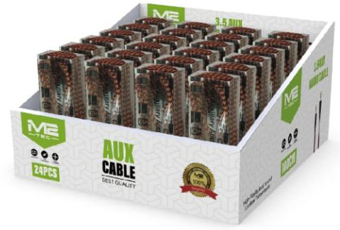 AUX Kabel 3,5mm 1m kabel farben sort. einzel im Sichtbox in 24er T-Dsp.