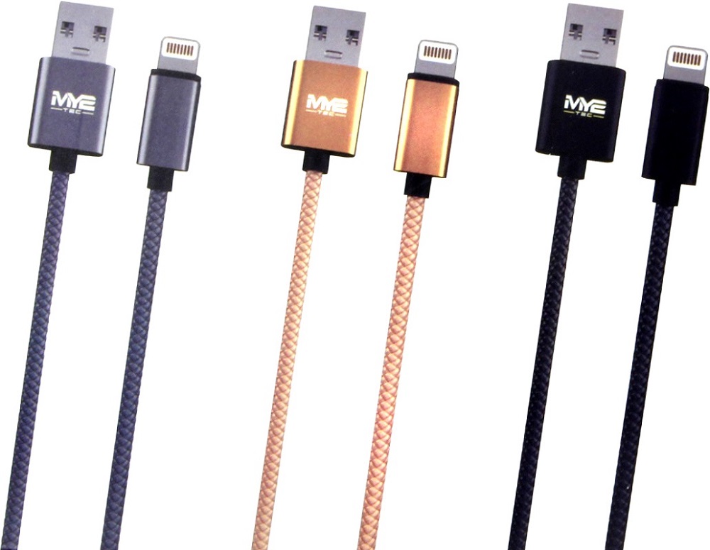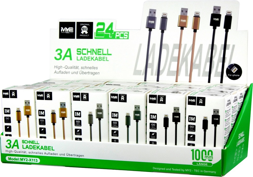 Schnell-Ladekabel Fast Charging Lightning Ladekabel 3A geflochten 1m 3/s (Schwarz, Grau, Rosé Gold) im 24er T-Dsp.