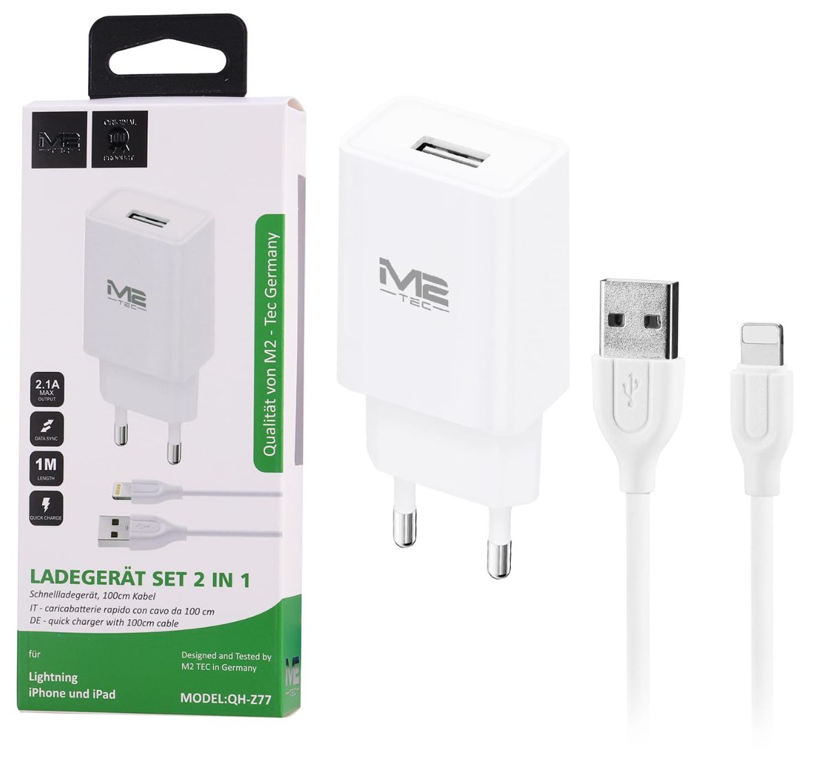 SchnellLadegerät 2in1 Set Lightning 1m 2,1 QUICK CHARGER DC 5V/2,1A AC 110-240V