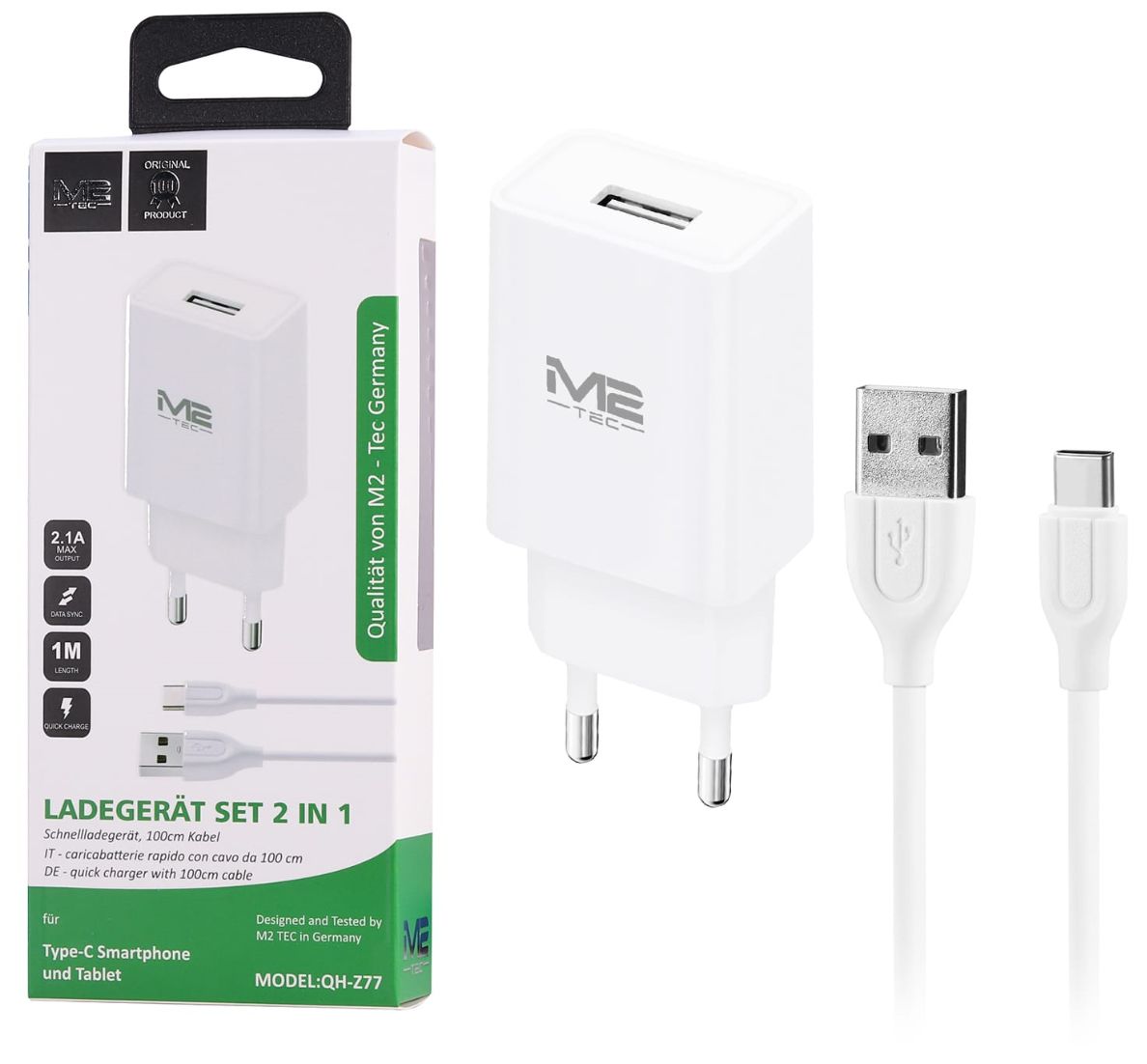 SchnellLadegerät 2in1 Set Type-C 1m 2,1 QUICK CHARGER DC 5V/2,1A AC 110-240V 50/