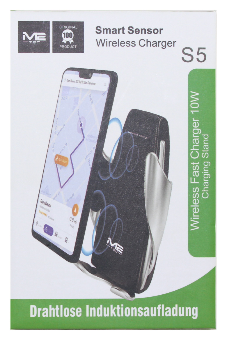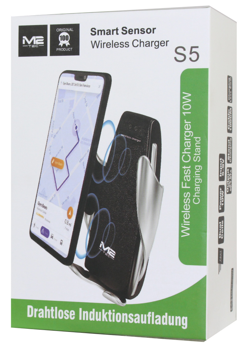 Universal Handy Halterung mir Drahtlose Induktiosaufladung/Wireless Charger Smart Sensor S5 10W input DC5V 2A DC9V 1,67A 1m Kabel 73x123mm in Farb Box