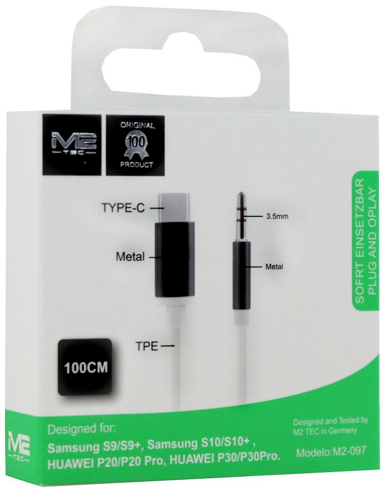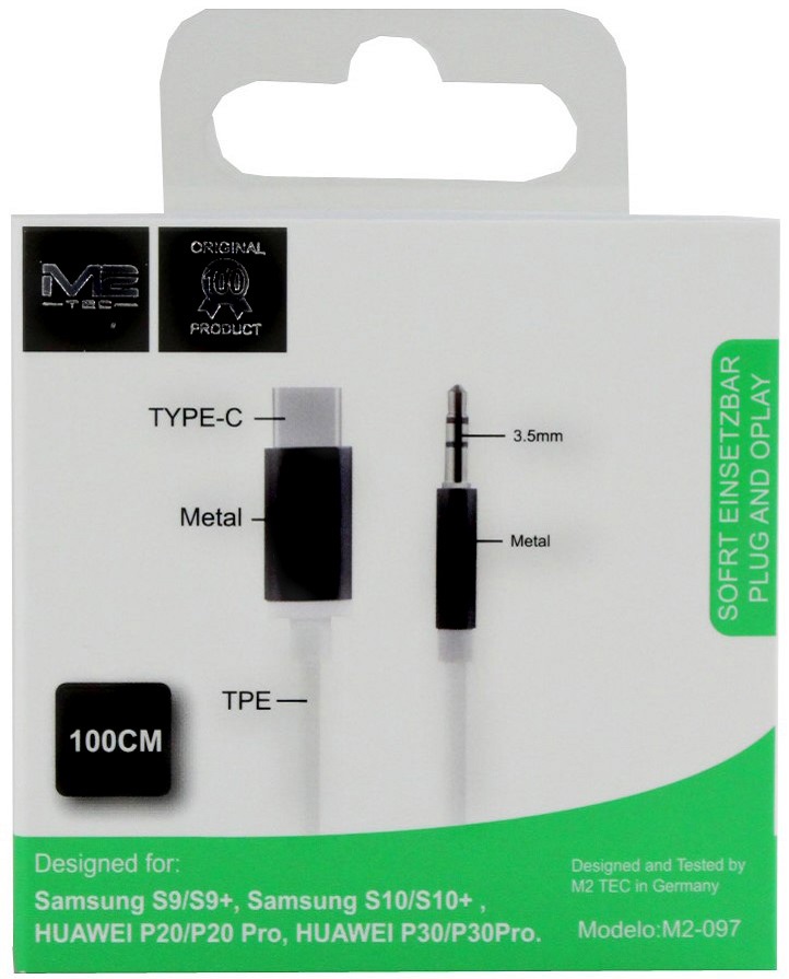 USB C auf AUX 3,5mm Klinkenstecker ca. 100cm in weiß/schwarz