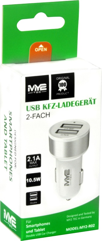 USB KFZ Netzteil / Ladegerät 2-fach USB-Port 2.1A / 1A 10,5W in Weiß
