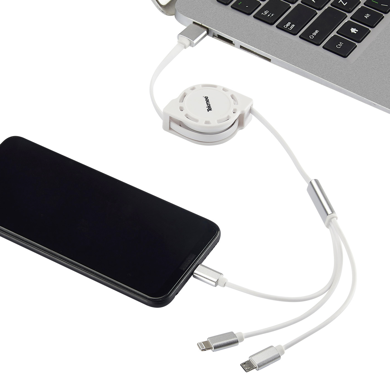 Handy Ladekabel 3 in 1 Aufziehbar USB auf Iphone,Samsung Micro, Typ-C ca. 1 m in