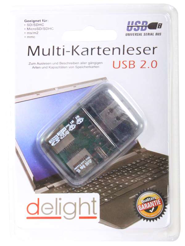 Kartenlesegerät USB 2.0 4ports für SD/SDHC, Micro SD/SDHC ms/m2 mmc in Doppelblister