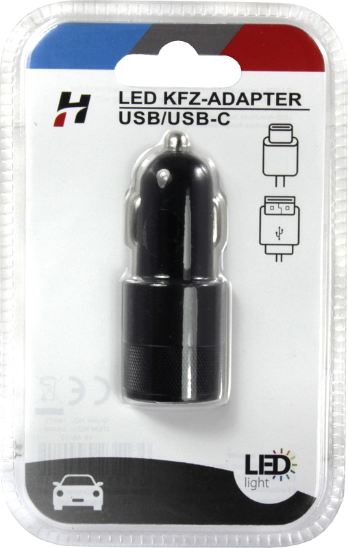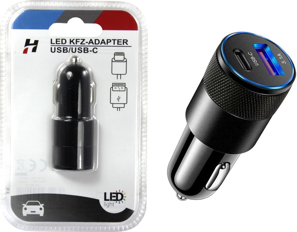 KFZ-Adapter Netzteil Charger mit LED 2 Anschlüsse 12-24V 2.0A / 3.1A USB & USB-C