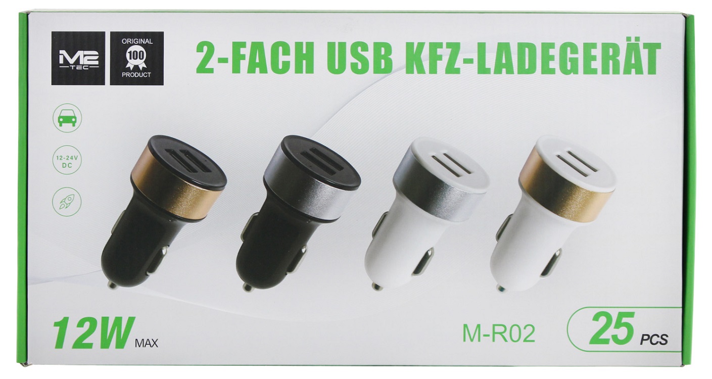 KFZ-Ladegerät 2-Fach USB 12V für Zigarettenanzünder in 25er T-Dsp.