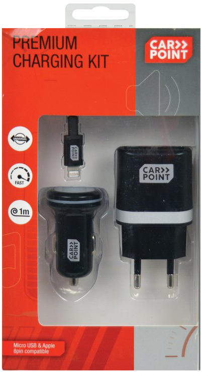 Premium Charging Kit 3tlg. für Auto & Haus 12V/220V (Lightning Ladekabel ca. 1m,