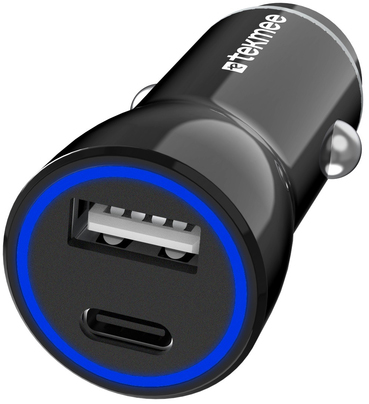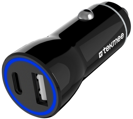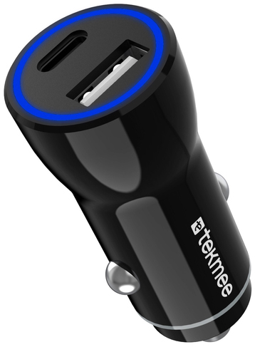 Tekmee USB KFZ Netzteil Charger Adapter 2 Anschlüsse USB und USB-C 12W BULK/Lose Ware(für 98182/98183)