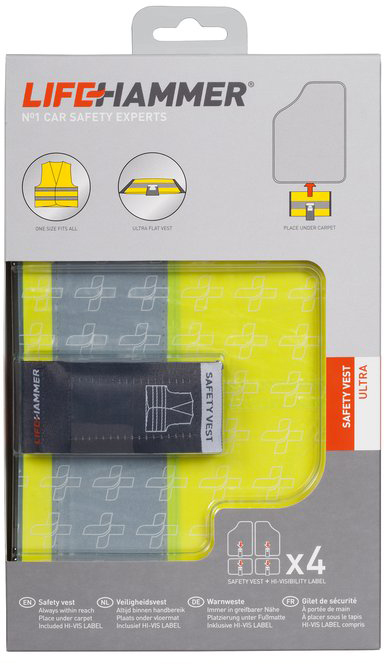 Warnweste Neon Gelb 4er SET mit Klett zum Besfestigen unter Fußmatten EN:ISO 204