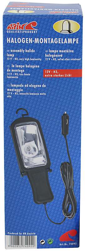 Halogen-Montagelampe, 12 V - H3, extra starkes Licht, 3,8m Kabel