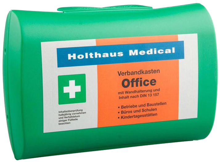 Office Verbandkasten aus Polypropylen und integrierter Wandhalterung. DIN 13157