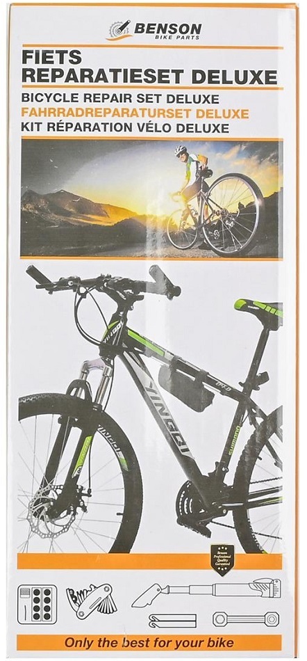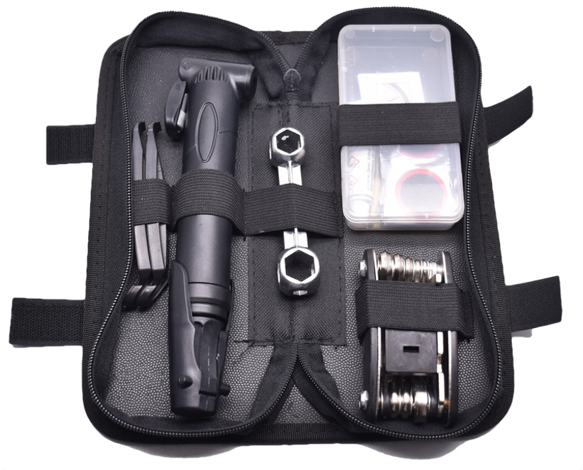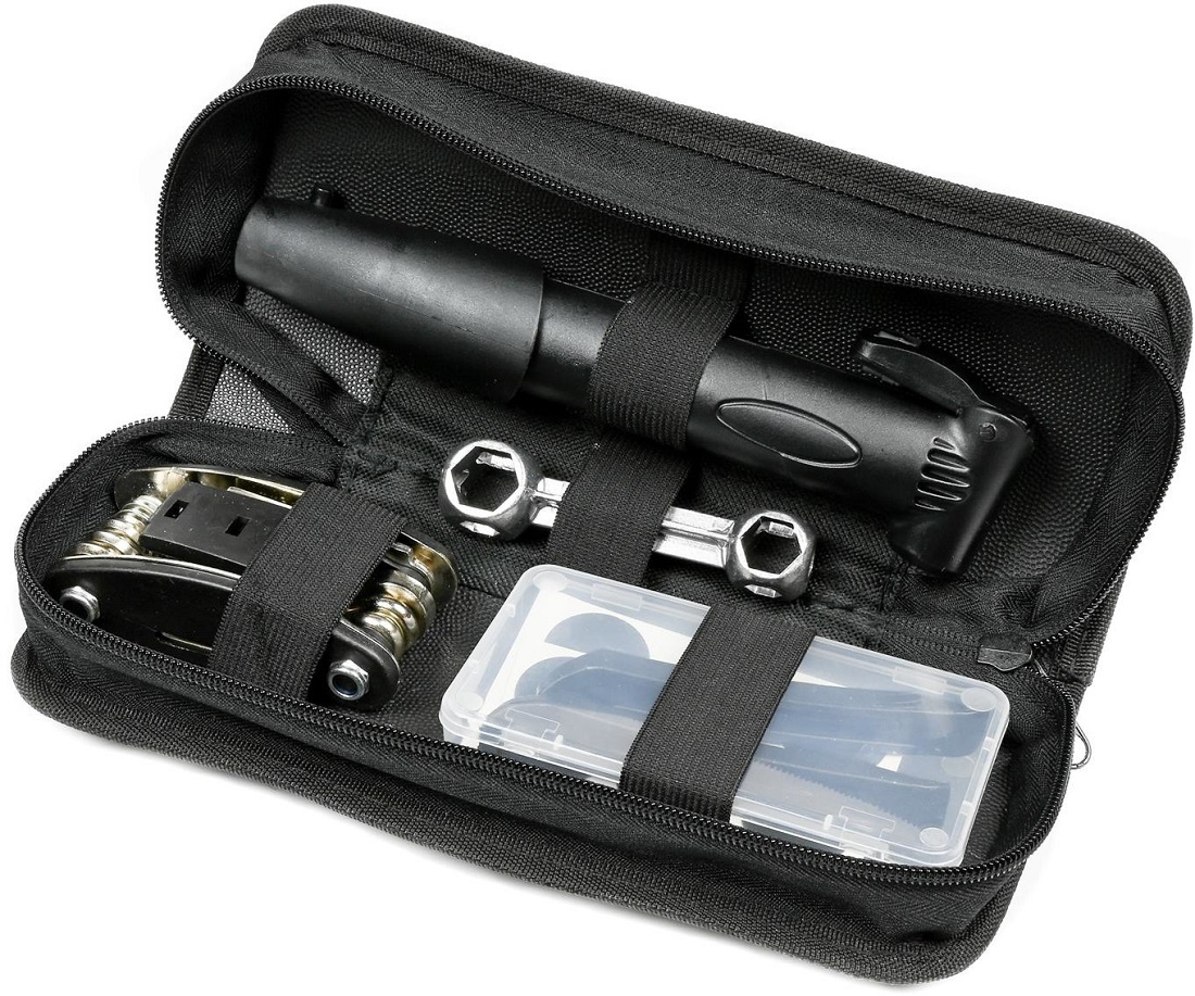 Fahrrad Reperaturset Deluxe 4tlg. in Tasche mit Halterung für Fahrrad (Minipumpe