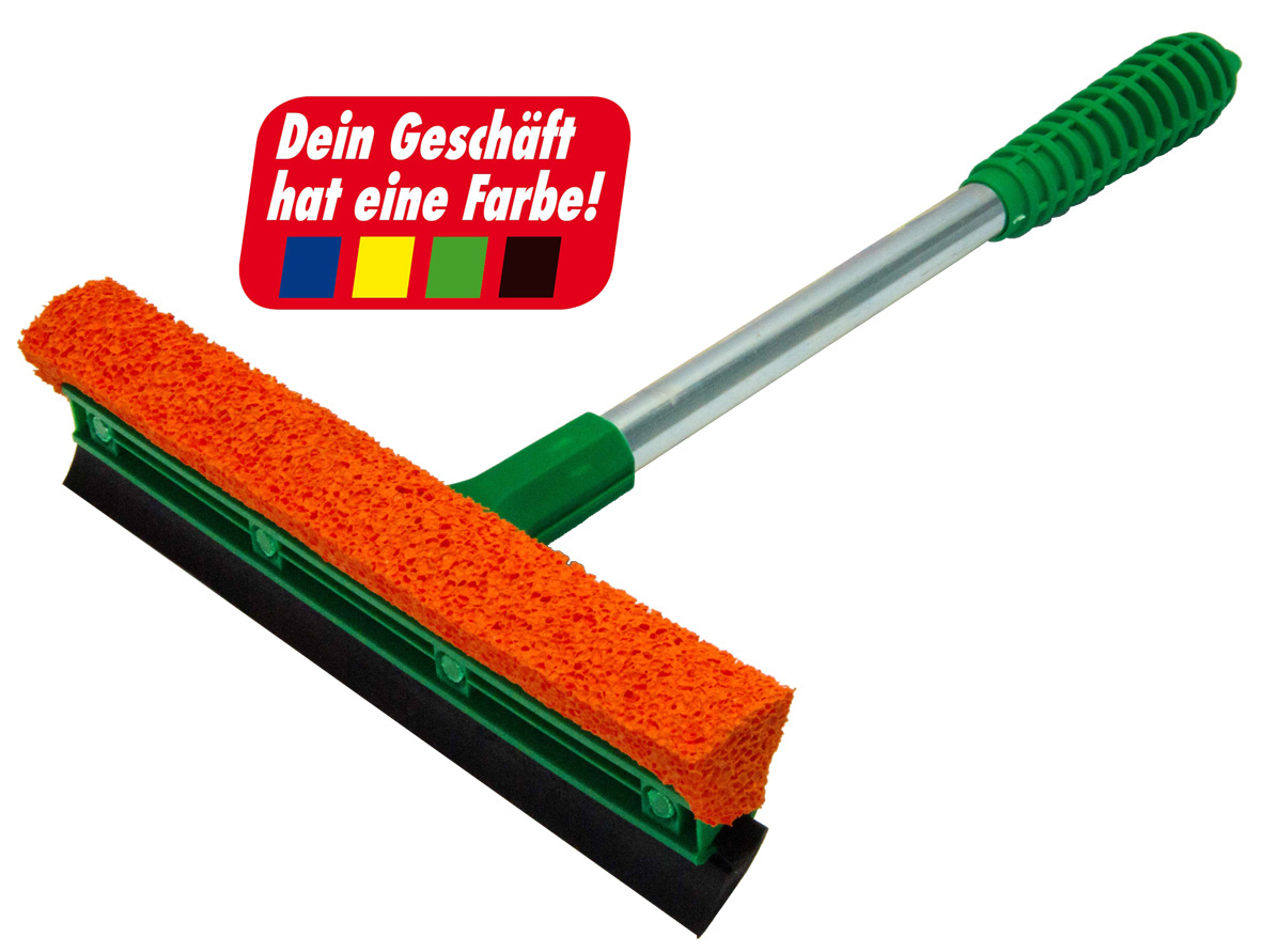Scheibenabzieher/Wascher in GRÜN Metallstiel L=31cm B=21cm Kunststoffausführung Gummilippe/Gummischwamm