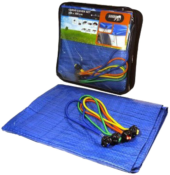 Plane Ladungssicherungsset mit 4 handlichen Kugelspannern. Inklusive Tasche. 200x300cm