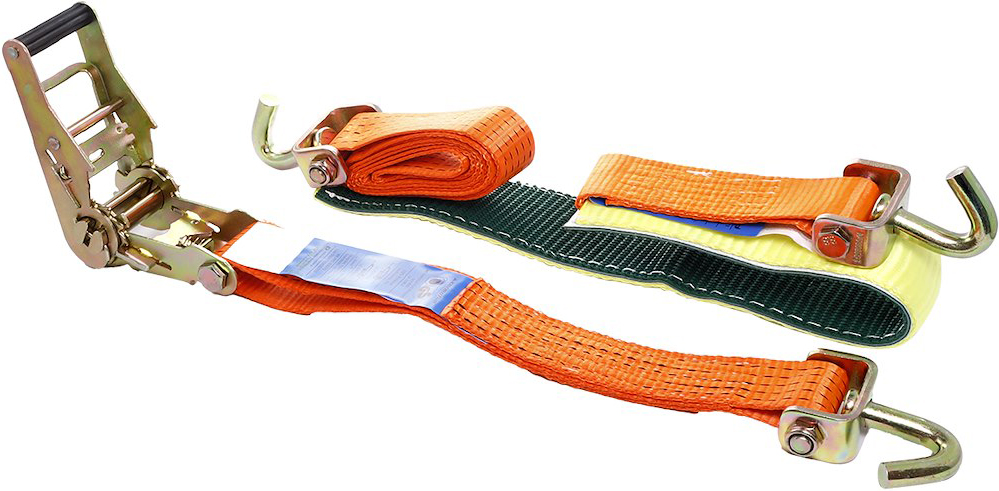 Spanngurt Autotransport mit TÜV Siegel, 3-Punkt mit Spannratsche, 3 Haken & Prot