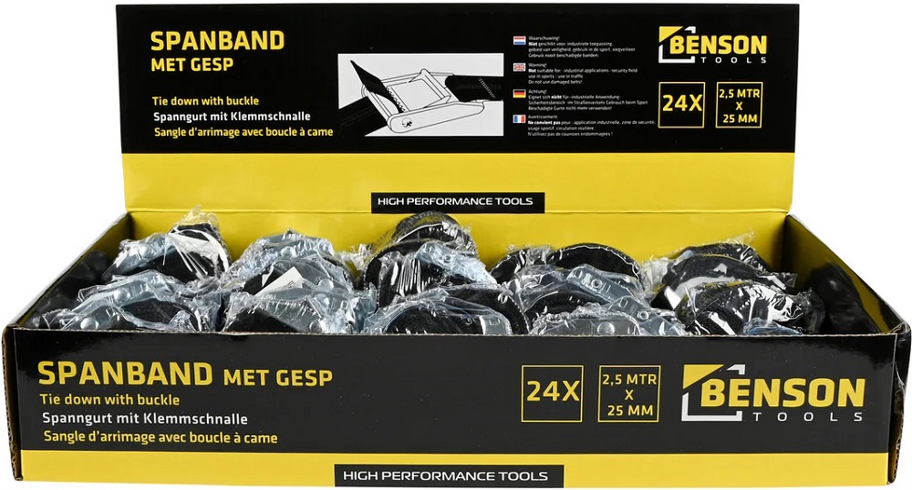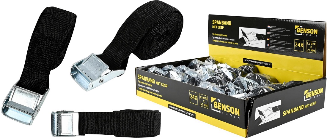Spanngurt mit Klemmschnalle ca. 2,5m x 25mm Schwarz im 24er T-Dsp.