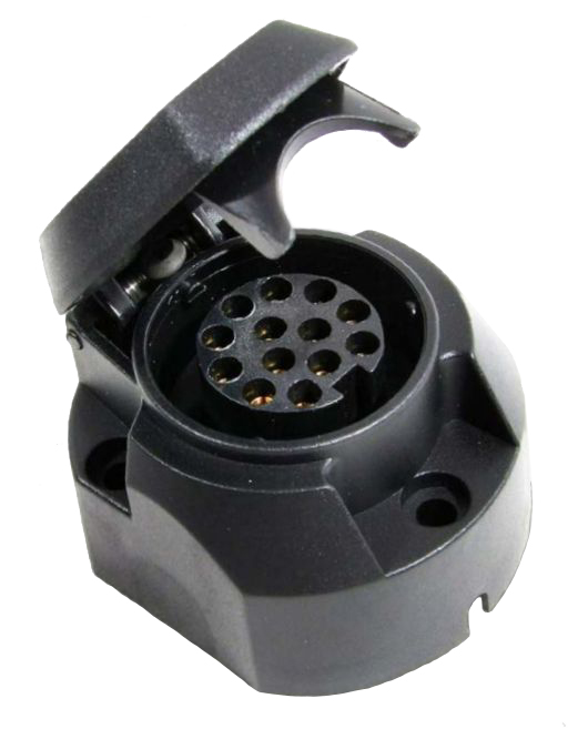 Anhängerstecker Steckdose - 13-polig - mit Nebelschlussleuchtenabschaltung - Stecker: Schraubkontakt - schwarz