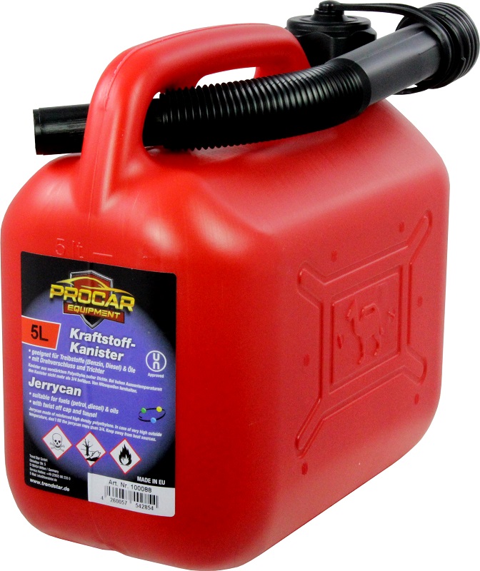 ProCar Kraftstoff Kanister 5l ROT/RED mit Trichter Füllmengenanzeige durch Sichtstreifen(UN Approved)