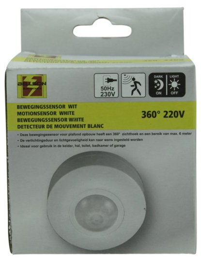 Bewegungsmelder Infrarot 360° Aufbau mit Timer, für Wand und Decke 1200W Weiß ca
