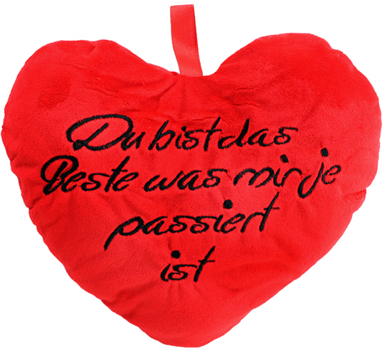 Herz Kissen mit gestickter "Du bist das Beste was mir je passiert ist" Aufschrift und Schlaufe ca. 35 x 30cm