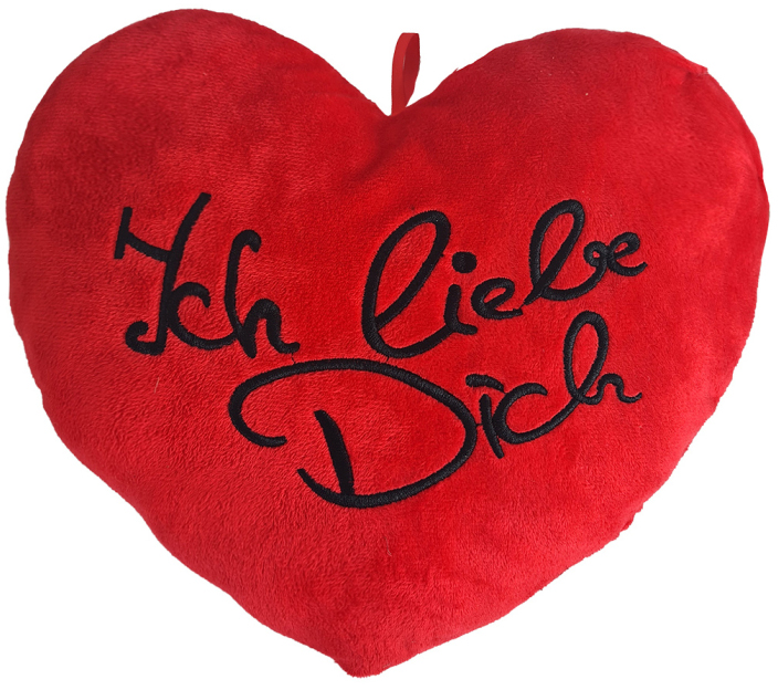 Herz Kissen XXL mit gestickter "Ich Iiebe Dich" Aufschrift und Schlaufe ca. 40cm