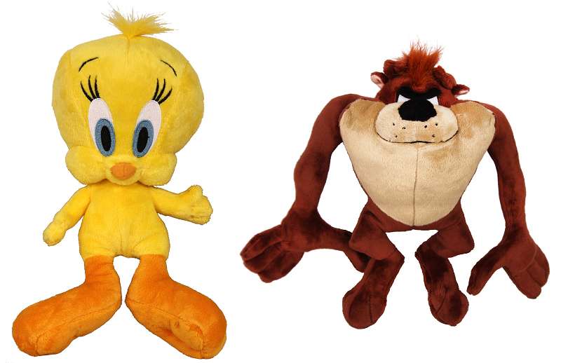 2x Plüsch Tweety, 1x Tasmanischer Teufel, stehend ca. 25cm