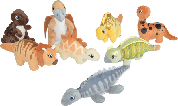 Plüsch Dinosaurier stehend und sitzend ca. 15-25cm 8/s in 16er T-Dsp.