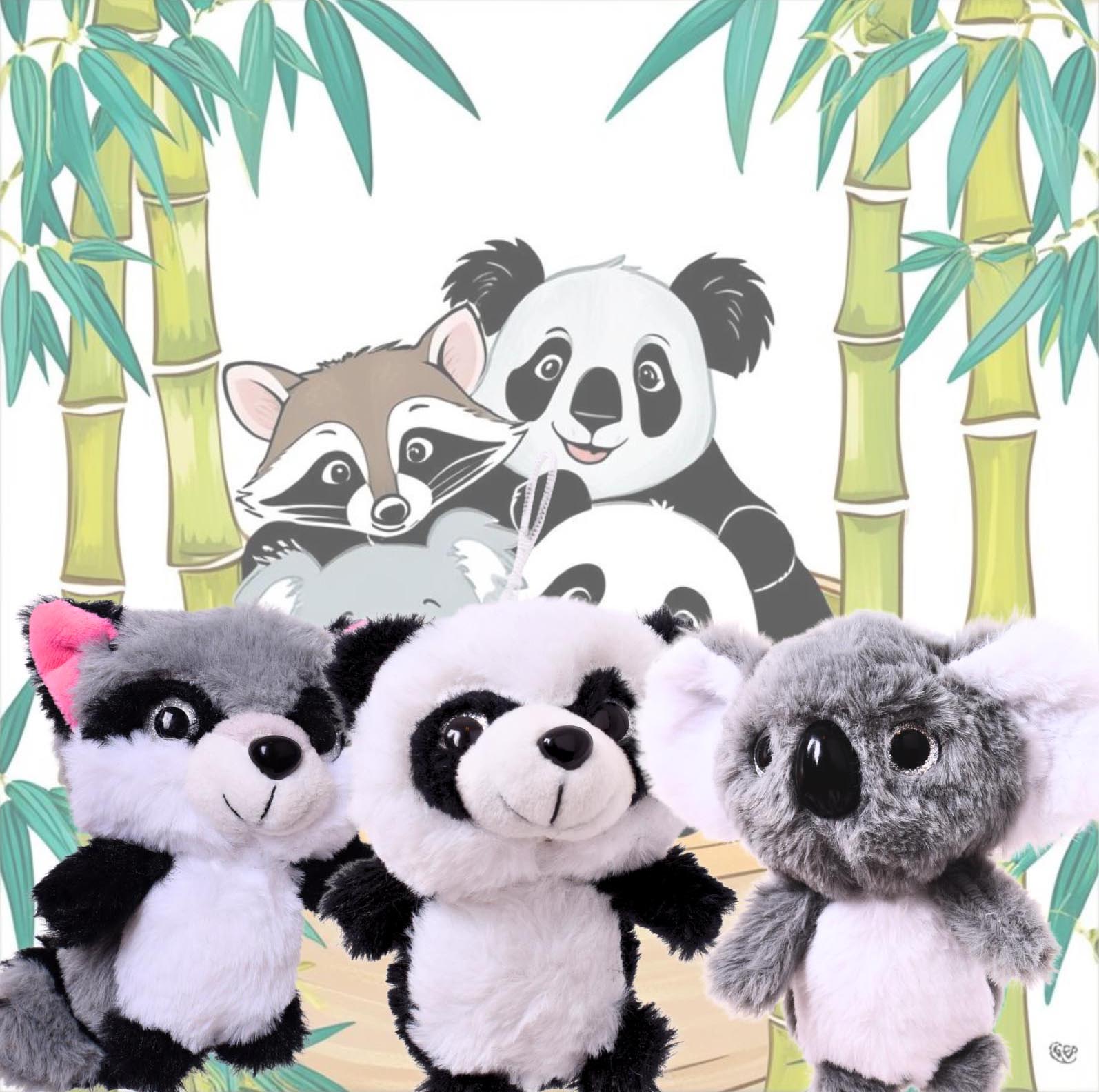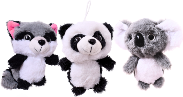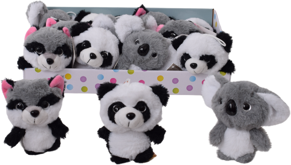 Plüsch kleiner niedlicher Koala, -Waschbär & -Panda mit GlitzerAugen ca. 13cm mit Schlaufe im 18er T-Dsp.