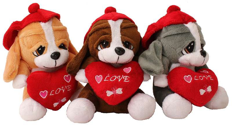 Hund mit Herz&Mütze "I Love You" 3-fach sort. ca. 28cm