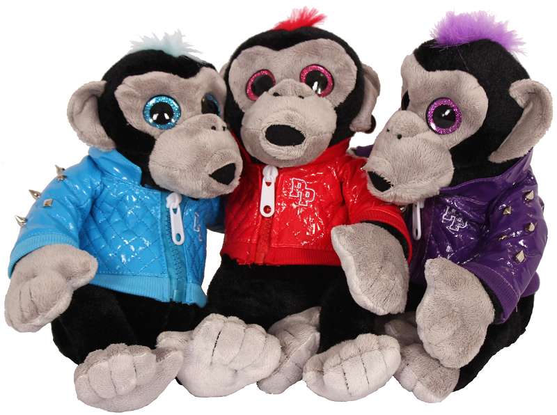 VE:3 Plüsch Affe mit Trend Lack Jacke/Glitzer Augen 3-fach sort.ca.25cm