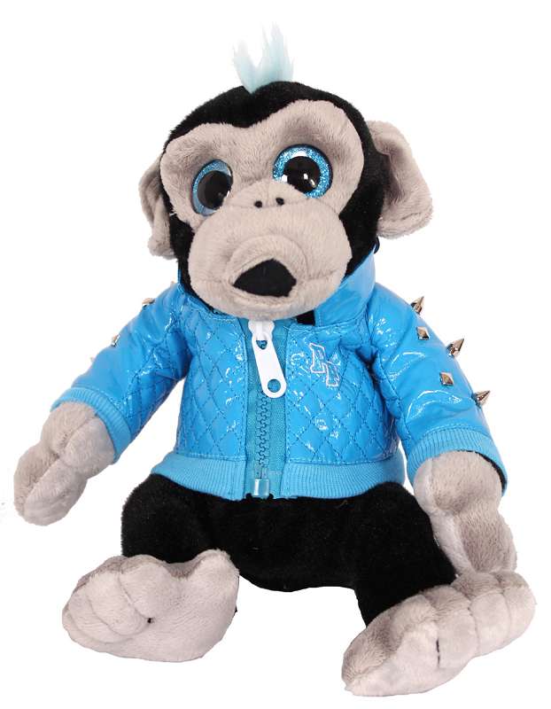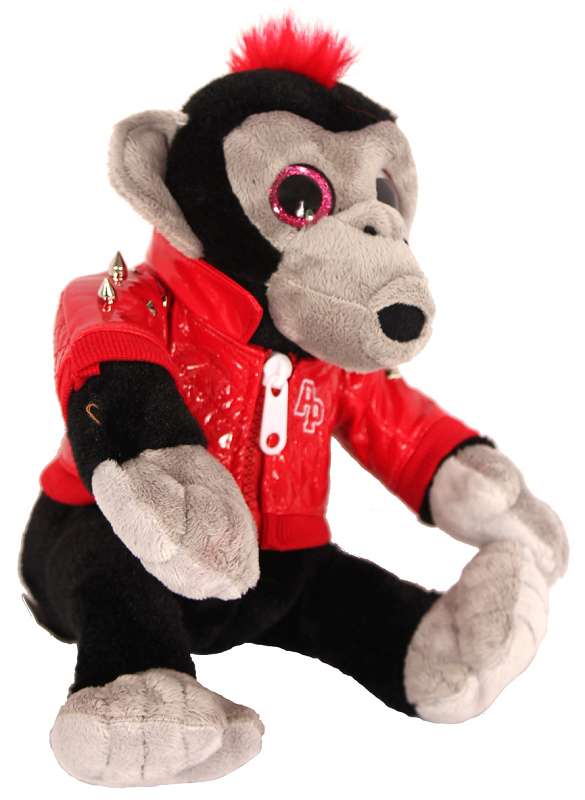 Plüsch Affe mit Trend Lack Jacke/Glitzer Augen 3-fach sort.ca.25cm