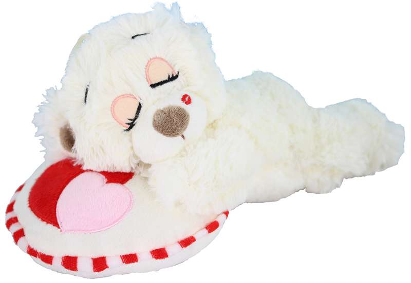 Plüsch Bär, schlafend auf Herzkissen mit Kussmund, ca. 31cm