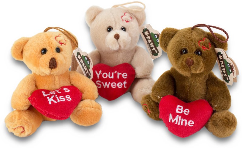 Plüsch Bär sitzend mit Herz in der Hand (Let´s Kiss, You´re Sweet, Be Mine) & He