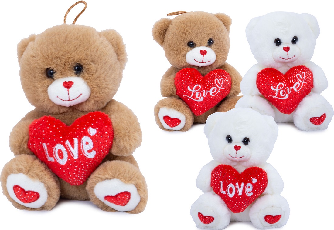 Plüsch Bär sitzend mit Herz LOVE & Herzstickerei an Nase und Pfoten 2/s ca. 15cm (Braun, Weiß)