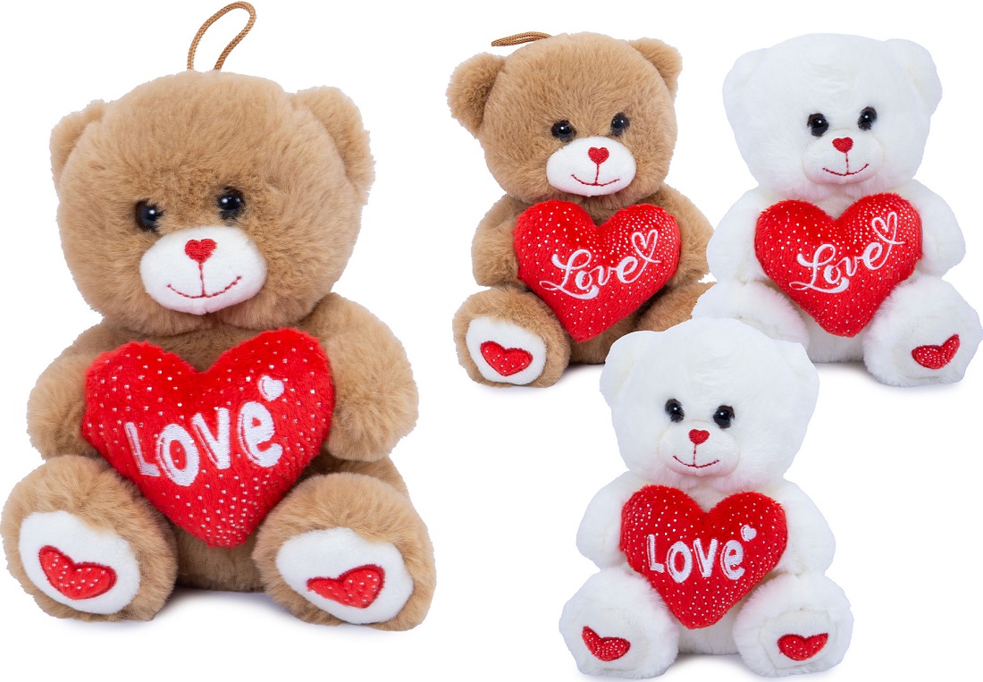 Plüsch Bär sitzend mit Herz LOVE & Herzstickerei an Nase und Pfoten 2/s ca. 18cm (Braun, Weiß)