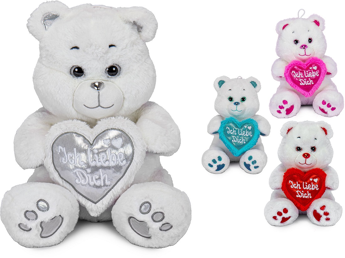 Plüsch Bär weiß / creme mit Herz "Ich liebe Dich" & GlitzerAugen ca. 60cm 4/s (Silber, Blau, Pink, Rot)