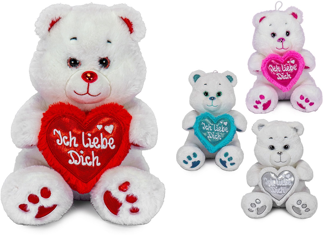 Plüsch Bär weiß mit Herz "Ich liebe Dich" & GlitzerAugen ca. 25cm 4/s (Rot, Blau