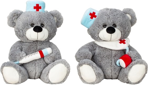 Plüsch Bären sitzend Doktoren mit Spritze & Stethoskop ca. 30cm