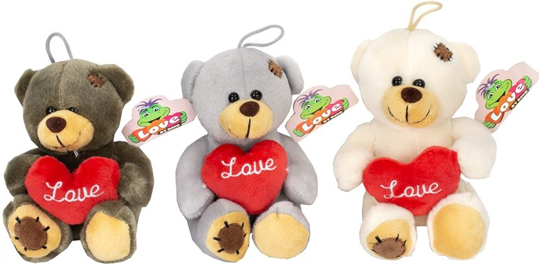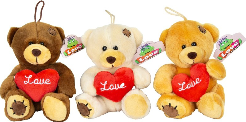 Plüsch Bären sitzend mit Flicken an Kopf u. Fuß & Herz in der Hand Love 6/s ca. 14cm (Braun, Beige, Hellbraun, Dunkelbraun, Grau, Weiß)