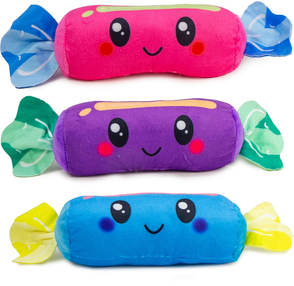 Plüsch Bonbon mit Glubschaugen 3/s ca. 18cm (Blau, Rosa, Lila)