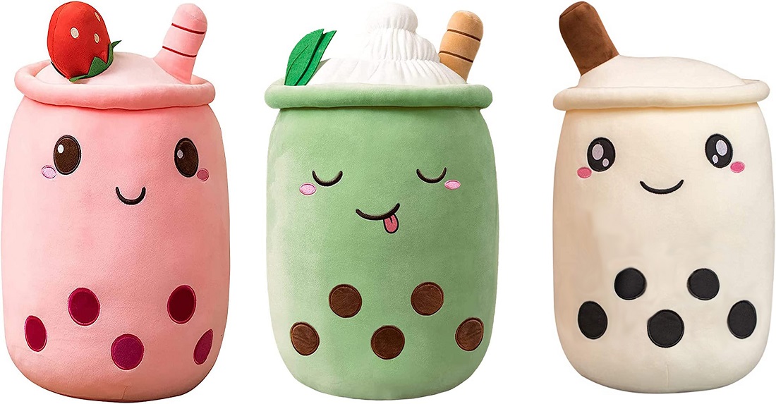 Plüsch Bubble Tea mit süßen Gesichtern ca. 25cm 3/s (Pink, Weiß, Grün)